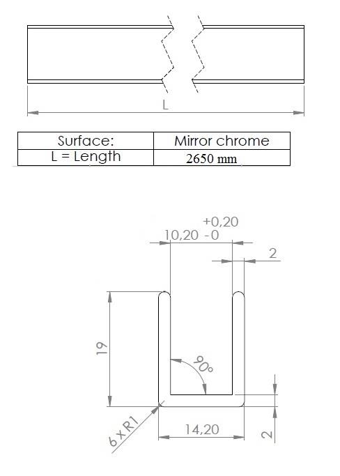 15.22.510 F/10MM GLASS, POLISHED ALUMINIUM, 2,5 MT